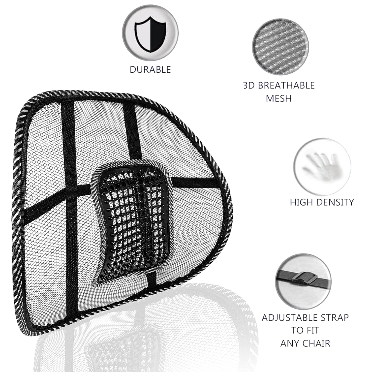 1 piece Lumbar Back Support, Mesh Cushion Backrest for Office Home Car Seat Portable Breathable Work Chair Rest Massage Beads for Lower Body Pain Relief