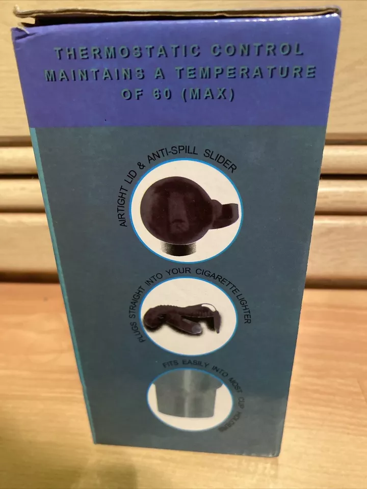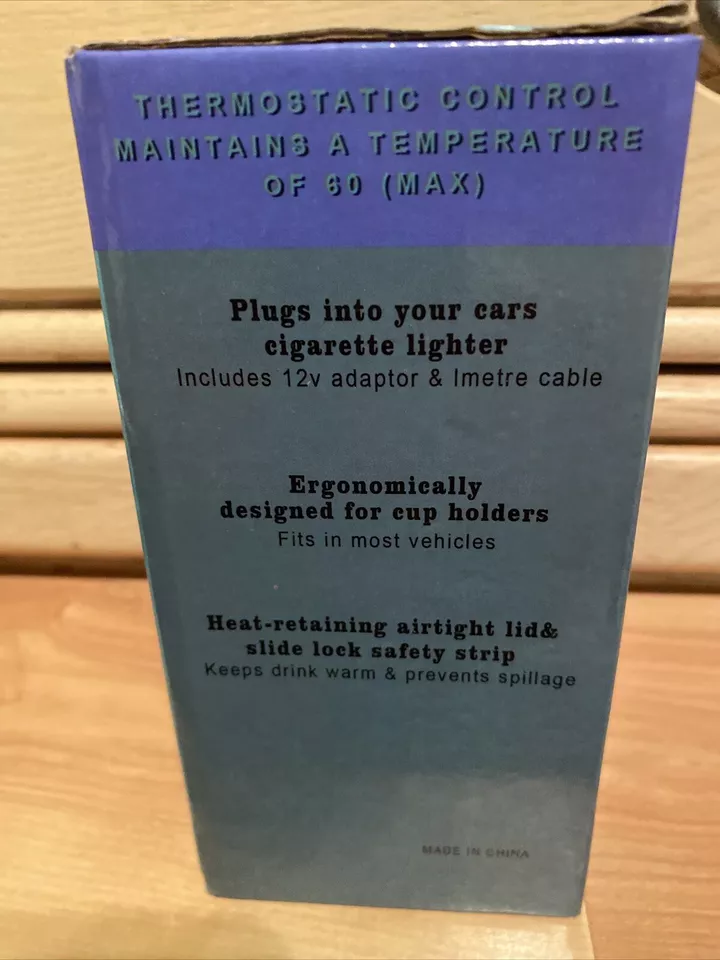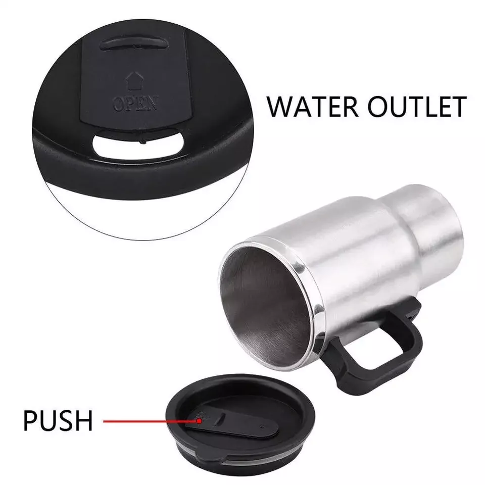 Powered by 12V cigarette lighter plug power source, enables to drink of hot water on the road.