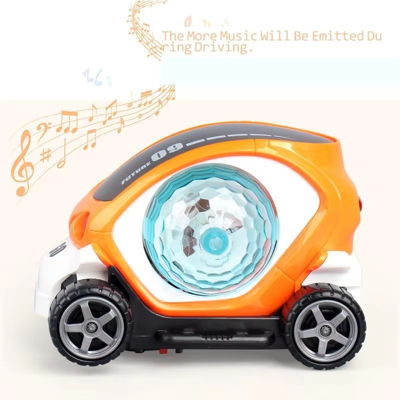 - The car rotates 360° Degrees and is a Bump and Go Toy with mesmerizing 4D LED Lights
