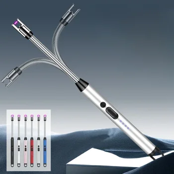 Gas Lighter Long with New Slide Out Design USB Gas Lighter Rechargeable with LED Display, Plasma Arc Lighter (Random color)