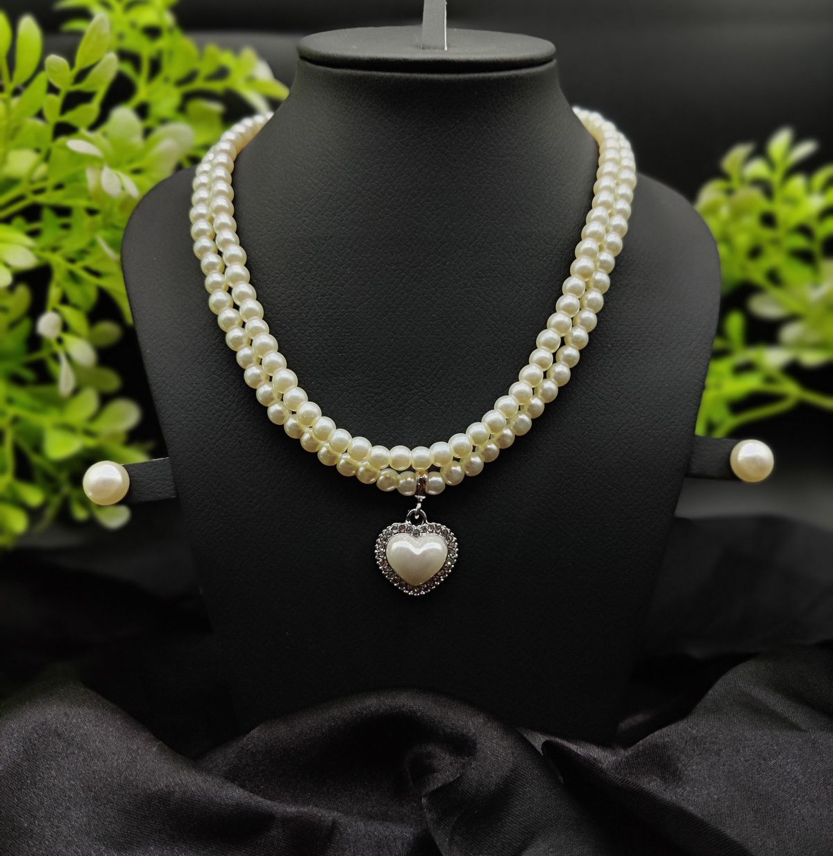 Be the first to review “Imported Elegant Double-Strand Pearl Necklace with Heart Pendant | Girls & Women Fashion”