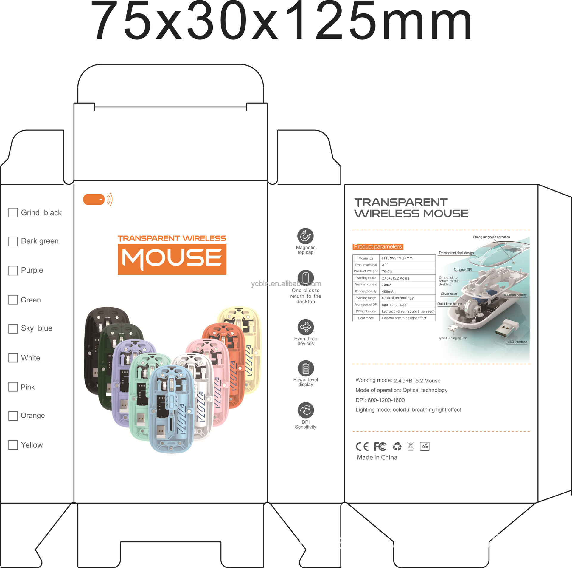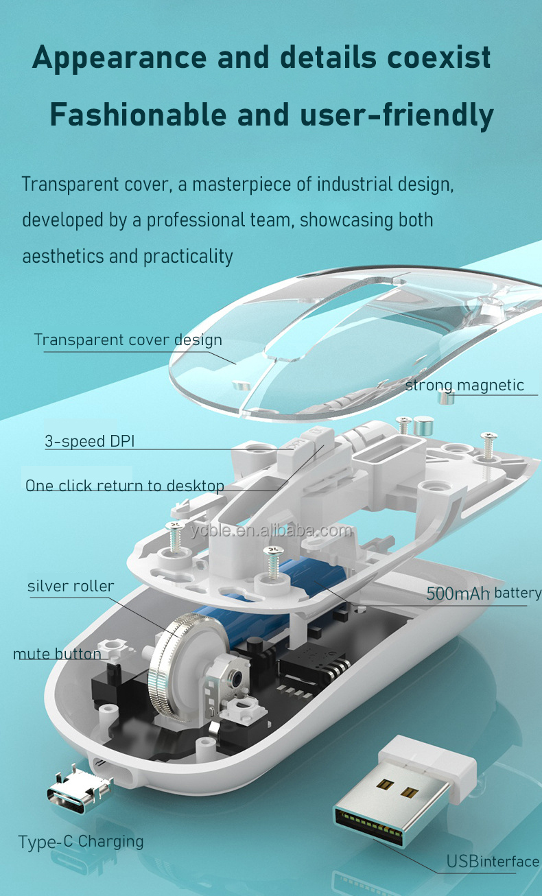 • The appearance of the fully transparent mouse design is beautiful and fashionable, with a variety of colors to choose from.
