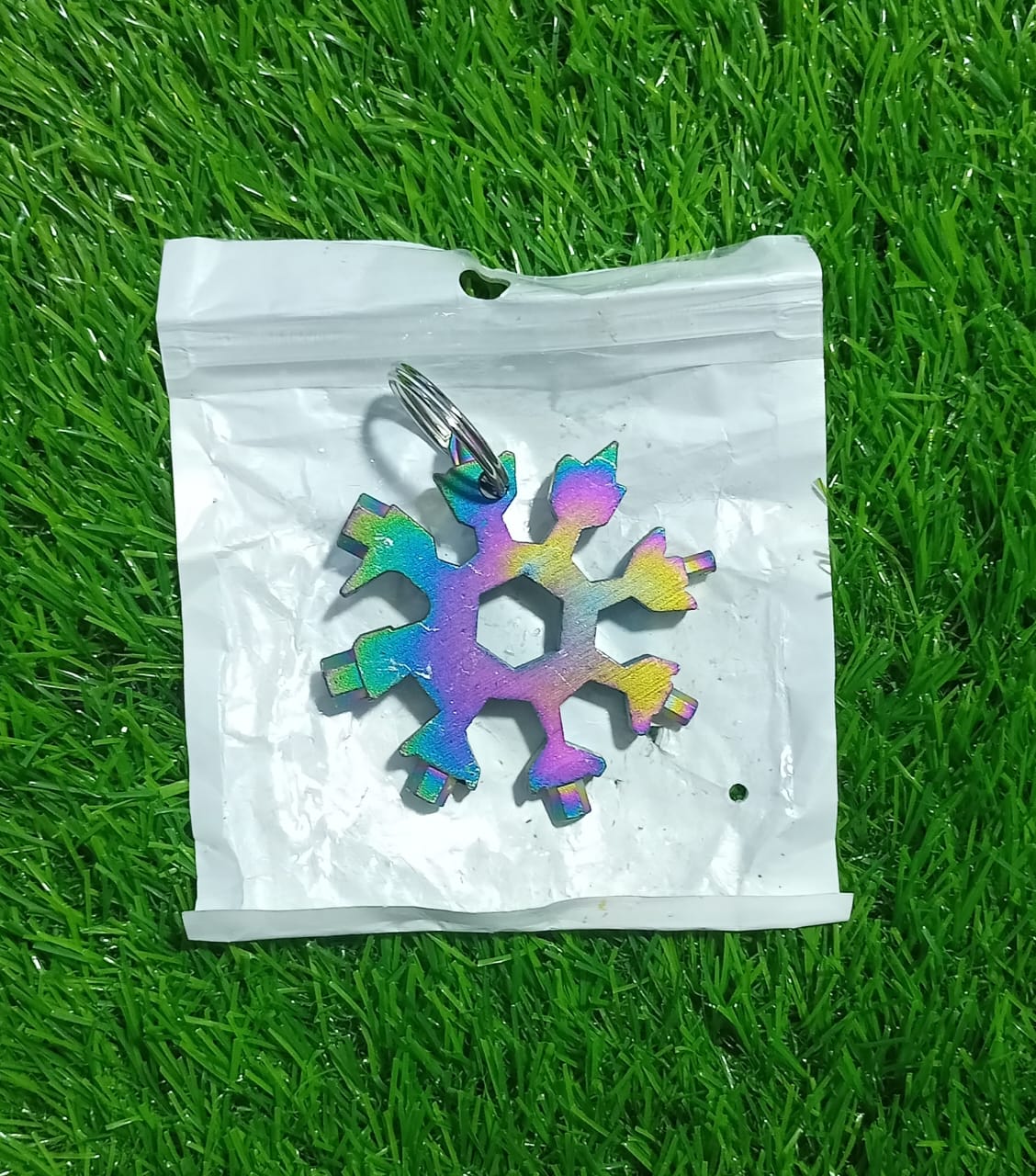 - ALL IN ONE TOOL:This snowflake multi purpose tool combines 18 different tools into one compact device, making this snowflakes multi-tool perfect for maintenance technicians and outdoor activity enthusiasts. When compared to the messy toolbox, this snow flake multi tool is more lightweight and space-saving. It can become hex wrench, screwdrivers, and even a bottle opener and also you can cut ropes if needed.