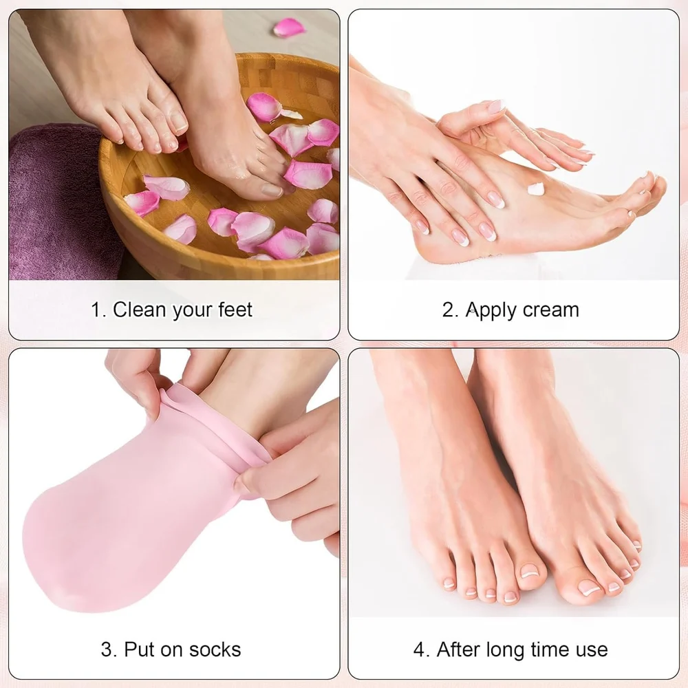 1.With comfortable sock-style design, the gel socks can strengthen skin elasticity, restore delicacy, and increase foot skin softness and smoothness. You can enjoy your foot spa at home.