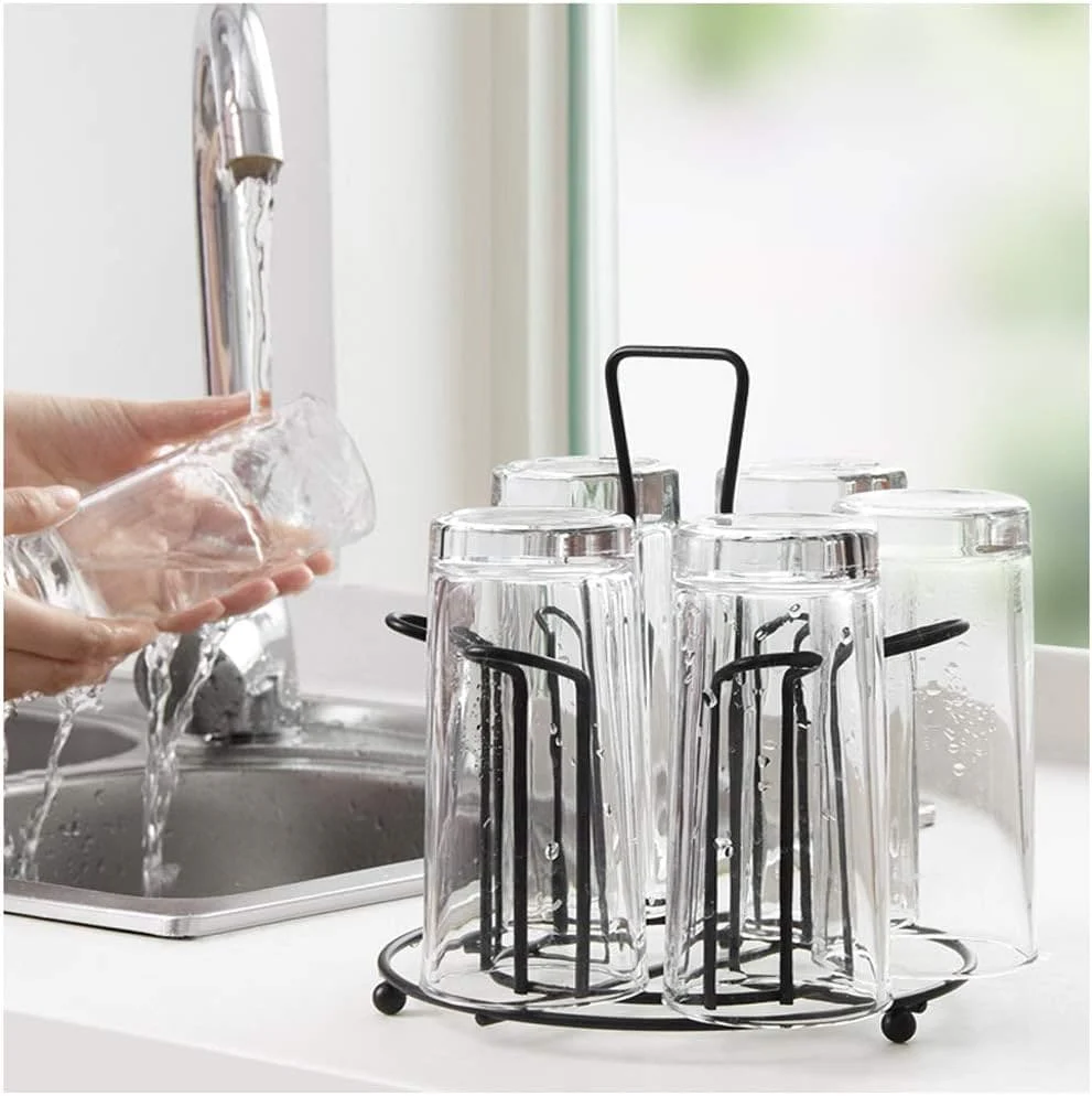 - This glass drying rack adult can be used as a drying rack for mugs cups, sports bottles, glass bottles, coffee cup rack, and baby bottle drying rack. It has a modern black coating and simple geometric lines, making it look elegant and stylish. It is suitable for all styles of decoration, whether it is a home, office, kitchen, dining room, or RV, it can be used as decoration or storage. It’s made of high-quality metal which is not easy to rust and deforms. The square base design has a larger load bearing area and good stability. It can be placed anywhere you want. It has 6 hooks, and each branch has a non-slip rubber head, suitable for different types and sizes of mugs, and can be used for glass mugs, ceramic mugs, coffee mugs, etc.